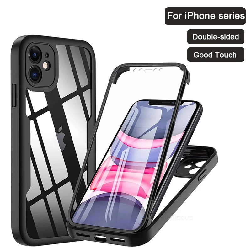 360 Degree Case For iPhone 15 14 13 12 11 Pro Max 14 Plus XS MAX XR Transparent Cover Full Body Rugged Built-in Screen Protector
